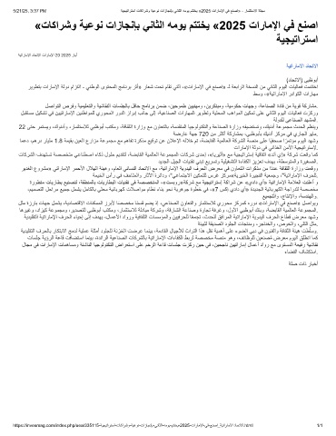 «تﺎﻛارﺷو ﺔﯾﻋوﻧ تازﺎﺟﻧﺈﺑ ﻲﻧﺎﺛﻟا ﮫﻣوﯾ مﺗﺗﺧﯾ «2025 تارﺎﻣﻹا ﻲﻓ ﻊﻧﺻا