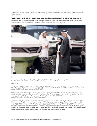 سمأ يبظوبأب »تاراملإا يف عنصا« يف ةلوج للاخ ةينطولا تاعانصلا ثدحأ ىلع علطي دمحم نب دلاخ