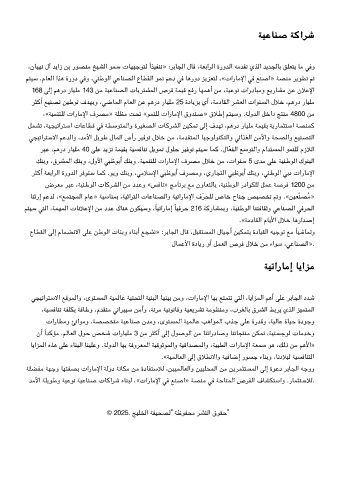 ﻢﺘﻴﺳ ،مﺎﻌﻟا اﺬﻫ ةرود ﻓو ،ﻨﻃﻮﻟا ﻋﺎﻨﺼﻟا عﺎﻄﻘﻟا ﻮﻤﻧ ﻢﻋد ﻓ ﺎﻫرود ﺰﻳﺰﻌﺘﻟ ،«تارﺎﻣﻹا ﻓ ﻊﻨﺻا» ﺔﺼﻨﻣ ﺮﻳﻮﻄﺗ ﻢﺗ