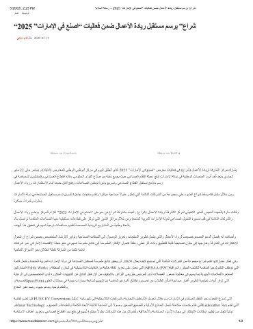 5/20/25, 2:23 PM “مﻼﺳﻟا ﺔﻟﺎﺳر – 2025 ”تارﺎﻣﻹا ﻲﻓ ﻊﻧﺻا“ تﺎﯾﻟﺎﻌﻓ نﻣﺿ لﺎﻣﻋﻷا ةدﺎﯾر لﺑﻘﺗﺳﻣ مﺳرﯾ ”عارﺷ