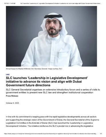 10/7/25, 11:40 AM SLC launches ‘Leadership in Legislative Development’ initiative to advance its vision and align with Dubai Government future direc…