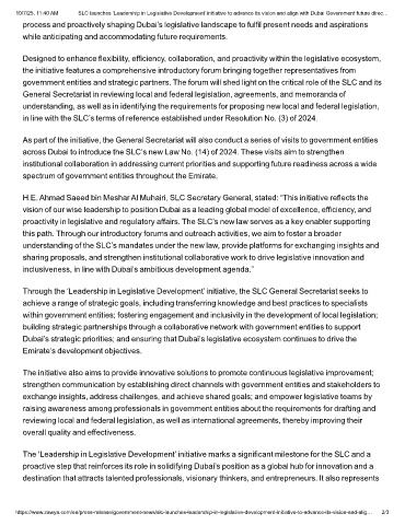 10/7/25, 11:40 AM SLC launches ‘Leadership in Legislative Development’ initiative to advance its vision and align with Dubai Government future direc…