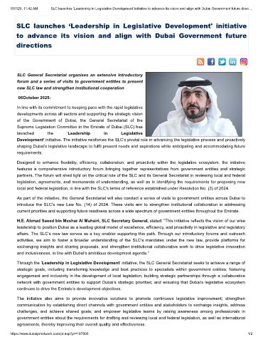 10/7/25, 11:42 AM SLC launches ‘Leadership in Legislative Development' initiative to advance its vision and align with Dubai Government future direc…