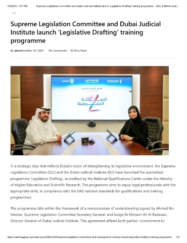 https://uaeblogging.com/index.php/2025/10/23/supreme-legislation-committee-and-dubai-judicial-institute-launch-legislative-drafting-training-programme/ 1/3