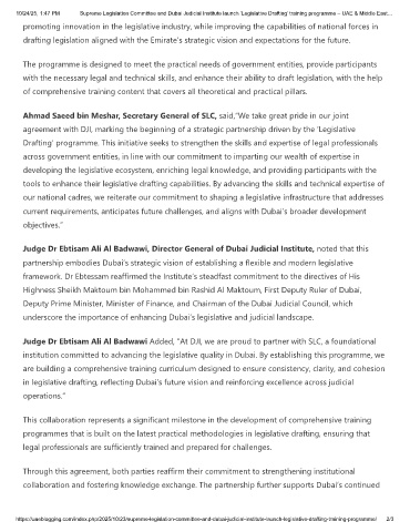 10/24/25, 1:47 PM Supreme Legislation Committee and Dubai Judicial Institute launch ‘Legislative Drafting’ training programme – UAE & Middle East…