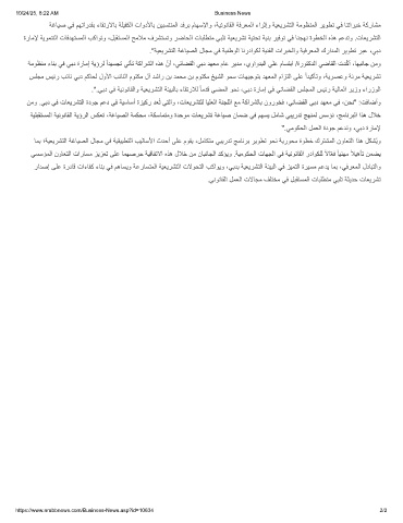 .".ﻲﺑد ﻲﻓ ﺔﯾﻧوﻧﺎﻘﻟاو ﺔﯾﻌﯾرﺷﺗﻟا ﺔﺋﯾﺑﻟﺎﺑ ءﺎﻘﺗرﻼﻟ ً ﺎﻣدﻗ ﻲﺿﻣﻟا وﺣﻧ ،ﻲﺑد ةرﺎﻣإ ﻲﻓ ﻲﺋﺎﺿﻘﻟا سﻠﺟﻣﻟا سﯾﺋر ﺔﯾﻟﺎﻣﻟا رﯾزو ءارزوﻟا