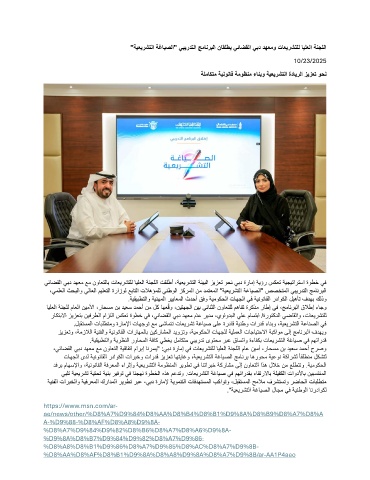 ،يئاضقلا يبد دهعم عم ن واعتلا ةيقافتا ماربإ انرسي" :يبد ةرامإ يف تاعيرشتلل ايلعلا ةنجللا ماع نيمأ ،راحسم نب ديعس دمحأ حرصو