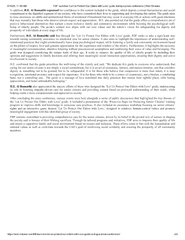 Furthermore, H.E. Al Rumaithi said that through the ‘Let Us Protect Our Elders with Love’ guide, FDF seeks to take a significant step