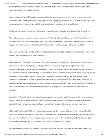 6/13/25, 2:00 PM Under directives of Fatima bint Mubarak, FDF launches ‘Let Us Protect Our Elders with Love’ guide - Aletihad News Center