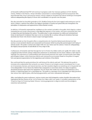 Furthermore, Al Rumaithi said that through the 'Let Us Protect Our Elders with Love' guide, FDF seeks to take