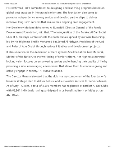 6/10/25, 10:22 AM FDF opens Barakat Al Dar Social Club to empower seniors - Emirati Times