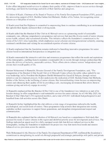 6/9/25, 11:07 AM FDF inaugurates Barakat Al Dar Social Club for senior citizens, residents at Al Shiwayb Centre – UAE Business and Travel Insights …