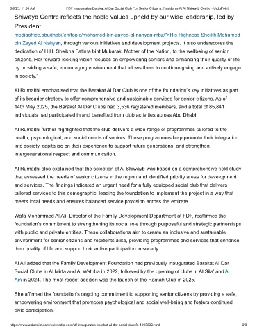 6/9/25, 11:08 AM FDF Inaugurates Barakat Al Dar Social Club For Senior Citizens, Residents At Al Shiwayb Centre - UrduPoint