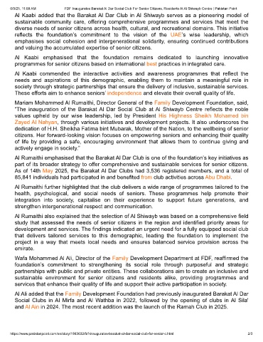 6/9/25, 11:09 AM FDF Inaugurates Barakat Al Dar Social Club For Senior Citizens, Residents At Al Shiwayb Centre | Pakistan Point