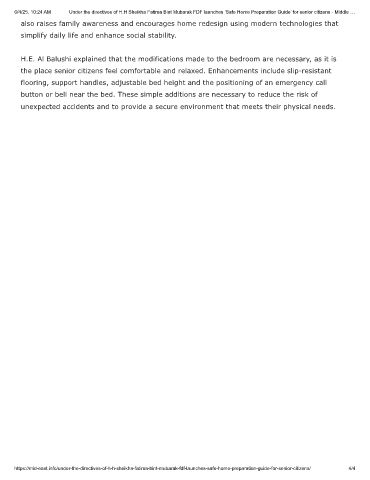 6/4/25, 10:24 AM Under the directives of H.H Sheikha Fatima Bint Mubarak FDF launches ‘Safe Home Preparation Guide’ for senior citizens - Middle …