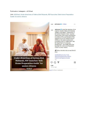 Publication: Instagram – Al Etihad Link: Al Etihad: Under directives of Fatima Bint Mubarak, FDF launches ‘Safe Home Preparation Guide’ for senior citizens