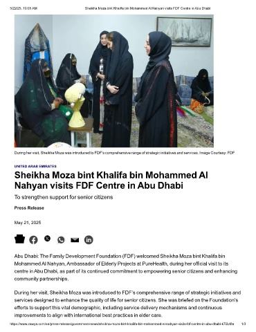 5/22/25, 10:05 AM Sheikha Moza bint Khalifa bin Mohammed Al Nahyan visits FDF Centre in Abu Dhabi