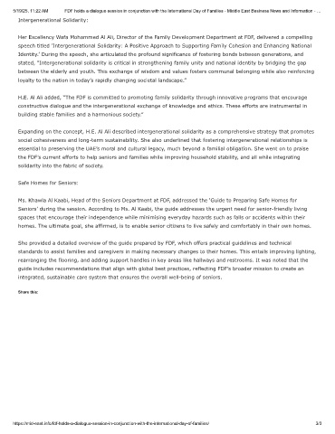 5/19/25, 11:22 AM FDF holds a dialogue session in conjunction with the International Day of Families - Middle East Business News and Information - …