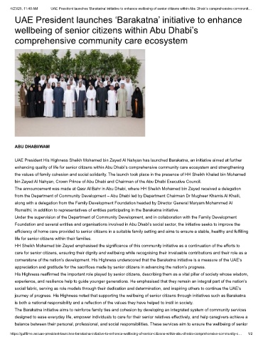 https://gulftime.ae/uae-president-launches-barakatna-initiative-to-enhance-wellbeing-of-senior-citizens-within-abu-dhabis-comprehensive-community-c… 1/2