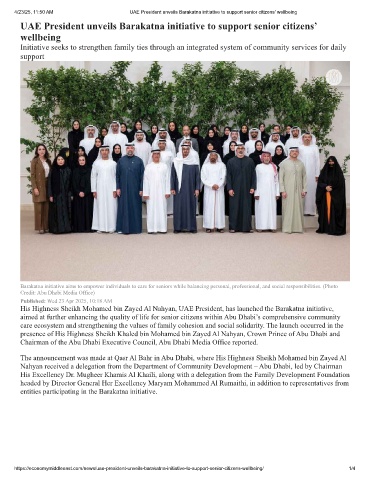 4/23/25, 11:50 AM UAE President unveils Barakatna initiative to support senior citizens' wellbeing