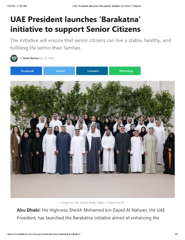 4/23/25, 11:50 AM UAE President launches 'Barakatna' initiative for Senior Citizens