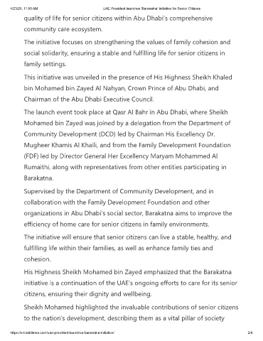 4/23/25, 11:50 AM UAE President launches 'Barakatna' initiative for Senior Citizens