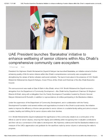 https://www.uaebarq.ae/en/2025/04/22/uae-president-launches-barakatna-initiative-to-enhance-wellbeing-of-senior-citizens-within-abu-dhabis-compre… 1/2