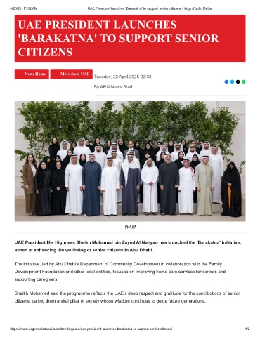 4/23/25, 11:52 AM UAE President launches 'Barakatna' to support senior citizens - Virgin Radio Dubai