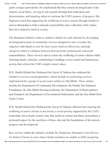 4/23/25, 11:53 AM UAE President launches 'Barakatna' initiative to enhance wellbeing of senior citizens within Abu Dhabi's comprehensive communit…