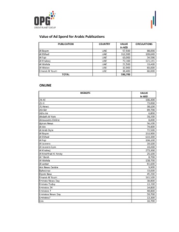 Value of Ad Spend for Arabic Publications