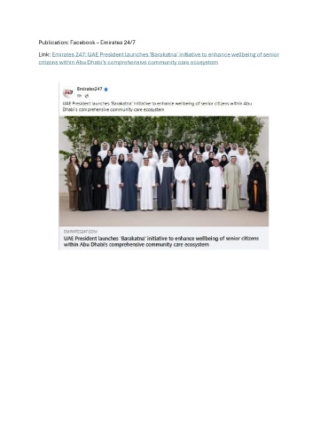 Publication: Facebook – Emirates 24/7 Link: Emirates 247: UAE President launches 'Barakatna' initiative to enhance wellbeing of senior citizens within Abu Dhabi’s comprehensive community care ecosystem