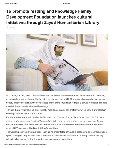 events and workshops through the Zayed Humanitarian Library (ZHL) for senior citizens and all members of