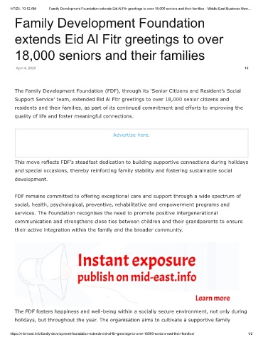 4/7/25, 10:12 AM Family Development Foundation extends Eid Al Fitr greetings to over 18,000 seniors and their families - Middle East Business New…
