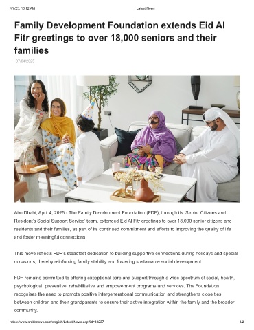 Abu Dhabi, April 4, 2025 - The Family Development Foundation (FDF), through its ‘Senior Citizens and