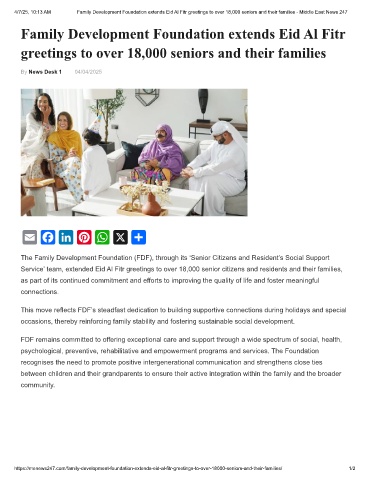 4/7/25, 10:13 AM Family Development Foundation extends Eid Al Fitr greetings to over 18,000 seniors and their families - Middle East News 247