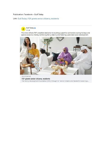Publication: Facebook – Gulf Today Link: Gulf Today: FDF greets senior citizens, residents