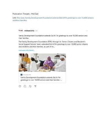 Publication: Threads – Mid East Link: Mid-East: Family Development Foundation extends Eid Al Fitr greetings to over 18,000 seniors and their families