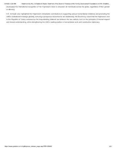 6/10/25, 9:24 AM Statement by H.E. Ali Salem Al Kaabi, Chairman of the Board of Trustees of the Family Development Foundation on H.H. Sheikha …