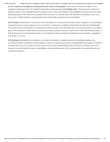6/10/25, 9:26 AM Statement by H.E. Ali Salem Al Kaabi, Chairman of the Board of Trustees of the Family Development Foundation on H.H. Sheikha …