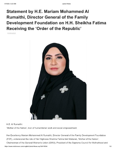 Her Excellency Mariam Mohammed Al Rumaithi, Director General of the Family Development Foundation