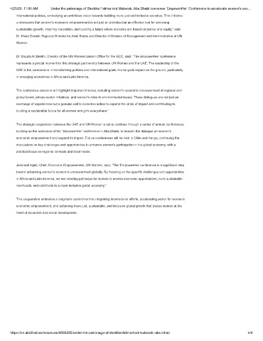 4/25/25, 11:06 AM Under the patronage of Sheikha Fatima bint Mubarak, Abu Dhabi convenes ‘EmpowerHer’ Conference to accelerate women's eco…