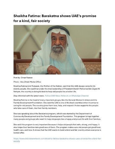 elderly people. She said that under the kind leadership of President Sheikh Mohamed bin Zayed Al