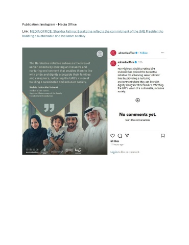 Publication: Instagram – Media Office Link: MEDIA OFFICE: Shaikha Fatima: Barakatna reflects the commitment of the UAE President to building a sustainable and inclusive society