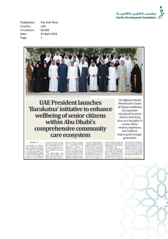 Publication: The Gulf Time Country: UAE Circulation: 60,000 Date: 23 April 2025 Page: 1