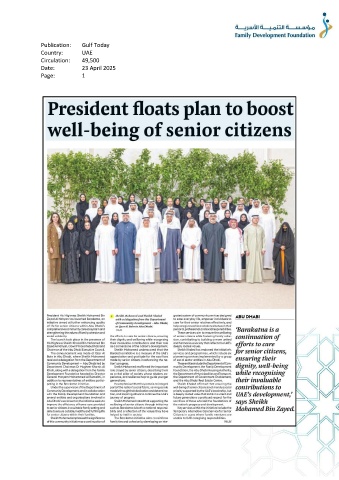 Publication: Gulf Today Country: UAE Circulation: 49,500 Date: 23 April 2025 Page: 1