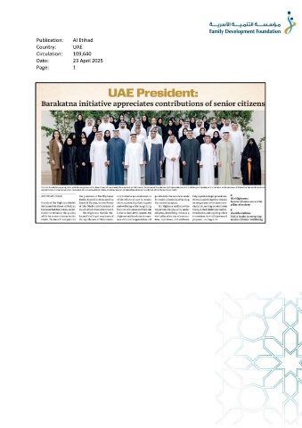 Publication: Al Etihad Country: UAE Circulation: 109,640 Date: 23 April 2025 Page: 1