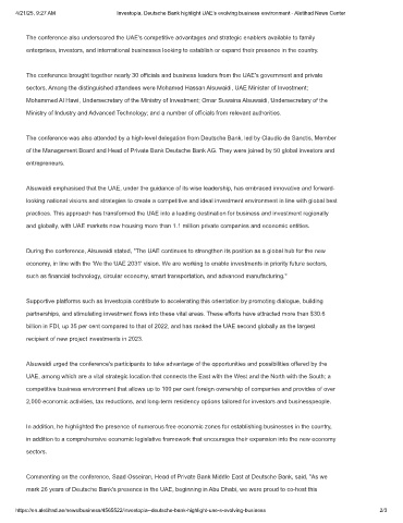 4/21/25, 9:27 AM               Investopia, Deutsche Bank highlight UAE’s evolving business environment - Aletihad News Center