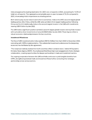 India emerged as the leading destination for UAE’s non-oil exports in 2024, accounting for 13.5% of