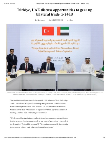 https://www.turkiyetoday.com/business/turkiye-uae-discuss-opportunities-to-gear-up-bilateral-trade-to-40b-141703/ 1/3