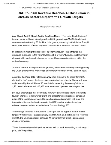 4/14/25, 4:49 PM UAE Tourism Revenue Reaches AED45 Billion in 2024 as Sector Outperforms Growth Targets